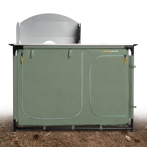 KADVA CAMPCook 221 Armoire de Cuisine de Camping Pliable 48,5 x 121 x 83,5 cm Armoire de Camping en matériaux résistants Construction légère et Stable Montage et Transport faciles Vert