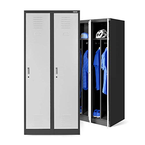 Jan Nowak Armoire Vestiaire Metallique 2B1A Casier en Métal 2 Compartiments cloison Revêtement en Poudre 180 cm x 80 cm x 50 cm (Gris)