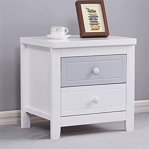 JCNAGXY Table de Chevet en Bois Massif Blanc Table de Chevet pour Chambre à Coucher, Armoire de Chevet garçon Fille Blanc Bleu 2 tiroirs, unité de Rangement pour Salon Chambre à Coucher