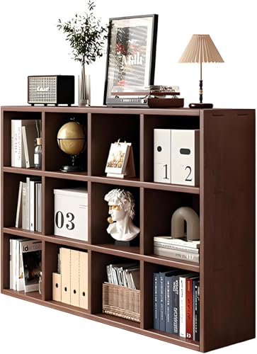 Étagère en Bois Massif Marron avec étagères Ouvertes Et Armoire De Rangement - Idéale pour La Décoration du Salon Ou De La Chambre à Coucher, Walnut Color, 35.4" x 11.8" x 35.4