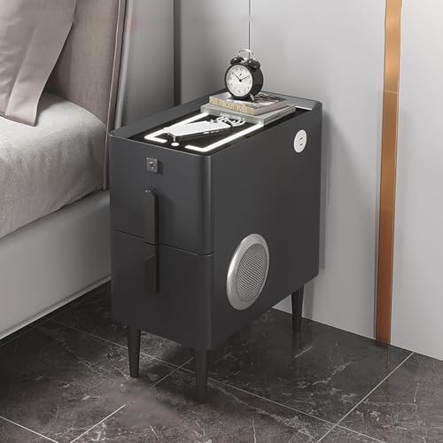 Chevet en Bois Massif à Côtés étroits avec Lumière LED, Chevet De Chambre avec Serrure à Empreintes Digitales, Armoire Latérale De Salon Moderne Et Intelligente avec Haut-Parleur Bluetooth,