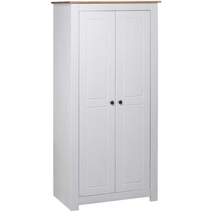 Garde-robe - Panama - Armoire de chambre - Bois massif - 2 portes - Blanc 80x50x1715 cm