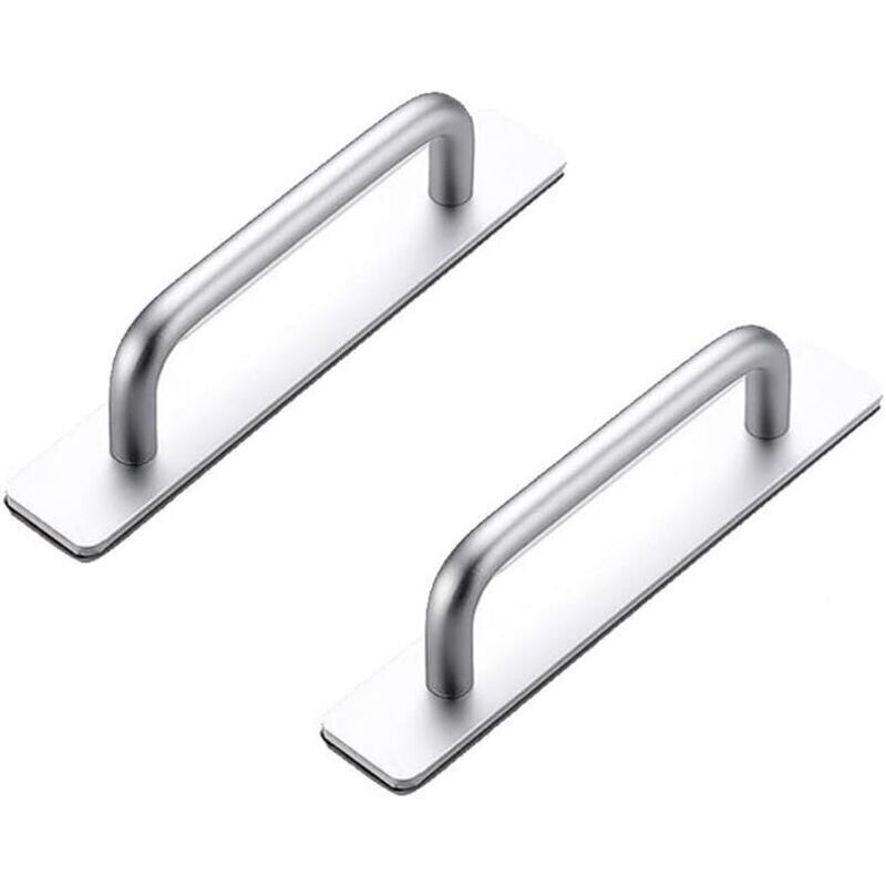 Lot de 2 poignées adhésives en aluminium pour armoire, chambre, salle de bain, cuisine (106 mm, argent)