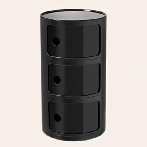 WEIDPHL Table De Chevet Ronde, Table De Chevet avec 3 Tiroirs, Table D'appoint, Armoire De Rangement avec Porte Coulissante pour Salon, Chambre À Coucher, Salle De Bain,Noir