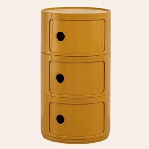 WEIDPHL Table De Chevet Ronde, Table De Chevet avec 3 Tiroirs, Table D'appoint, Armoire De Rangement avec Porte Coulissante pour Salon, Chambre À Coucher, Salle De Bain,Turmeric