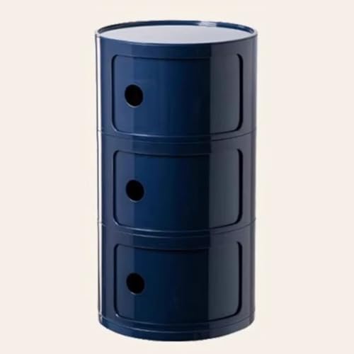 WEIDPHL Table De Chevet Ronde, Table De Chevet avec 3 Tiroirs, Table D'appoint, Armoire De Rangement avec Porte Coulissante pour Salon, Chambre À Coucher, Salle De Bain,Bleu