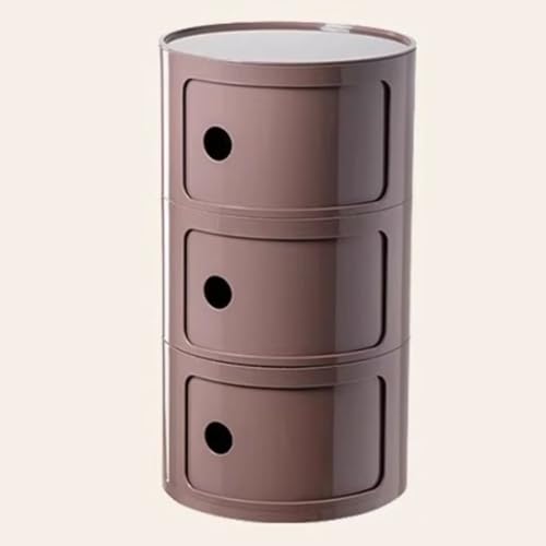 WEIDPHL Table De Chevet Ronde, Table De Chevet avec 3 Tiroirs, Table D'appoint, Armoire De Rangement avec Porte Coulissante pour Salon, Chambre À Coucher, Salle De Bain,Marron