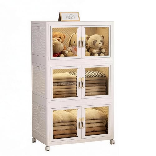 Ribech Armoire de Rangement Pliable 3 Niveaux avec Portes Magnétiques & Roulettes – Grand Bac de Stockage, 2 Roues Bloquantes, pour Vêtements, Atelier