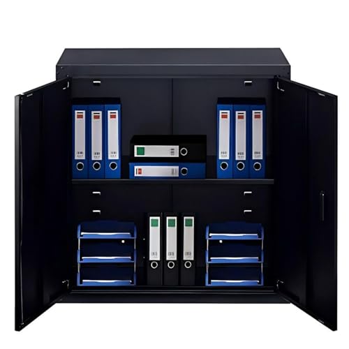 Casier de bureau armoire meuble de rangement pour bureau atelier chambre acier de bureau métallique à 2 portes 90 x 80 x 33 cm noir mat 03_0006341