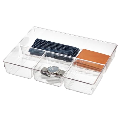 iDesign Linus Boite Tiroir pour Armoire Ou Coiffeuse, Boite de Rangement Plastique de 33,0 cm X 22,9 cm X 5,7 cm Avec 4 Compartiments, Transparent