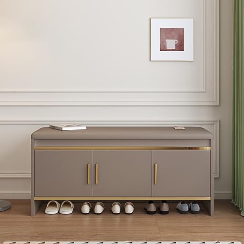 Banc à chaussures en bois avec armoire d'entrée Cush pour couloir et salon Aucun assemblage nécessaire Kaki 90x Slish Shoe nizer & Seat