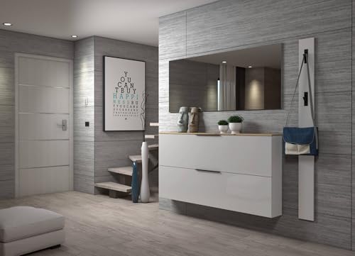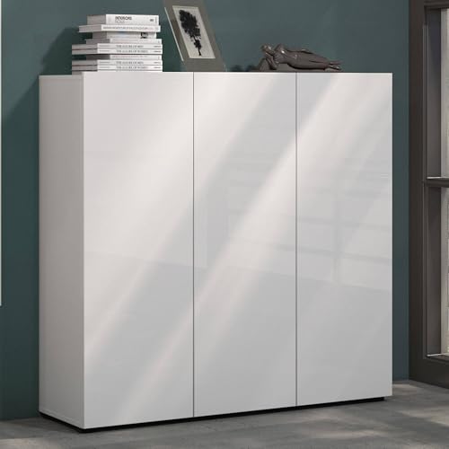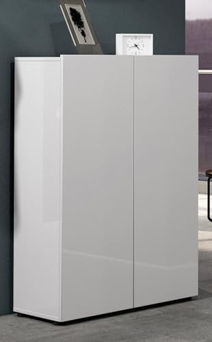 Dmora Uitenhage, Armoire d'entrée Multi-usages, Meuble Rangement Chaussure, fabriqué en Italie, 160 x 34 x 115 cm, Blanc Brillant