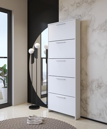 Dmora - Meuble à Chaussures Alpherg, Meuble à Chaussures, Armoire d'entrée Polyvalente, Rangement pour Chaussures, 105x26 h119 cm, Blanc