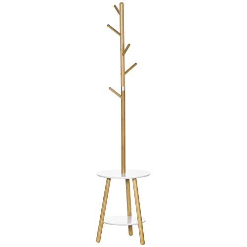 HOMCOM Porte-manteau sur pied 2-en-1 armoire d'entrée 5 crochets 2 étagères design contemporain cosy 39,5 x 39,5 x 171 cm bois de bambou massif