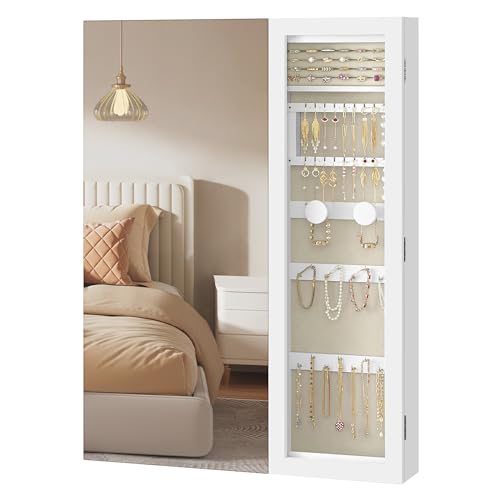 Teenpull Armoire à bijoux avec miroir, montage mural ou sur porte, 30 x 8,5 x 90 cm, verrouillable, en bois pour chambre à coucher, salle de bain, dressing