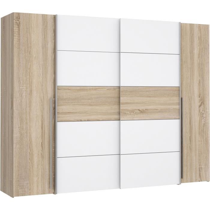 Armoire 2 portes coulissantes - Panneaux de particules - Blanc mat et décor chêne - L 120 x P 612 x H 1905 cm - OZZULA
