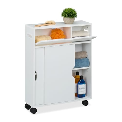 Relaxdays Chariot de Niche, Portes coulissantes, 67 x 17 x 52 cm, Salle de Bain, Armoire étroit avec roulettes, Blanc