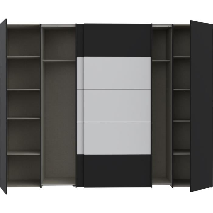 Armoire - Noir / Blanc - 2 portes battantes + 2 portes coulissantes - L2703 x P612 x H2105 cm - NARAGO