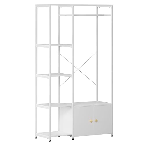 AuraCraft Porte-manteau en métal avec armoire en bois, convient pour les couloirs, la chambre à coucher et le salon (blanc chaud, 100 x 40 x 180 cm)