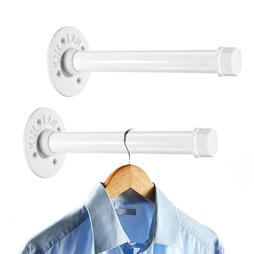 Sumnacon Lot de 2 barres à vêtements industrielles de 20,3 cm – Cintres rustiques en métal robuste avec vis, support mural pour chambre à coucher, salle de bain, armoire, magasin de vêtements, blanc