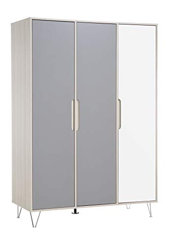 roba Armoire Enfant en Bois "Maren 2" 3 Portes - Garde-Robe avec Penderie et 6 Étagères - Gris Clair / Chêne Blanchi