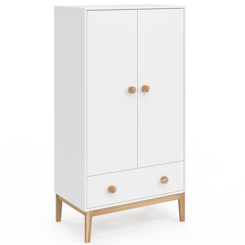 Armoire enfant 2 portes JACOB avec tiroir blanc et bois