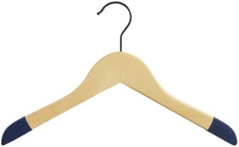 Box and beyond - Lot de 40 Cintres - 32 x 1 x 20 cm - Bois Naturel et Bleu Marine - Dressing, Porte-Manteaux, Armoire, Placard, Chambre, Entrée - Vêtements, Manteaux, Robes, Chemises - Style Moderne