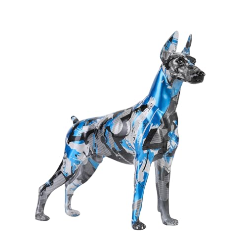FLYuechun Ranan Statue de chien Doberman peinte simple et créative en couleur graffiti, décoration d'intérieur, entrée, armoire à vin, bureau, animal de compagnie, artisanat en résine (argenté)