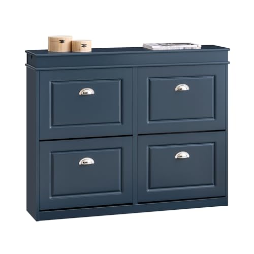 SoBuy Meuble Chaussure Rangement Chaussure avec 4 Abattants, Armoire à Chaussures Entrée, Meuble à Chaussures, Range Chaussures 16 Paires, pour Couloir, Entrée, 105x24x83 cm, Bleu, FSR79-B