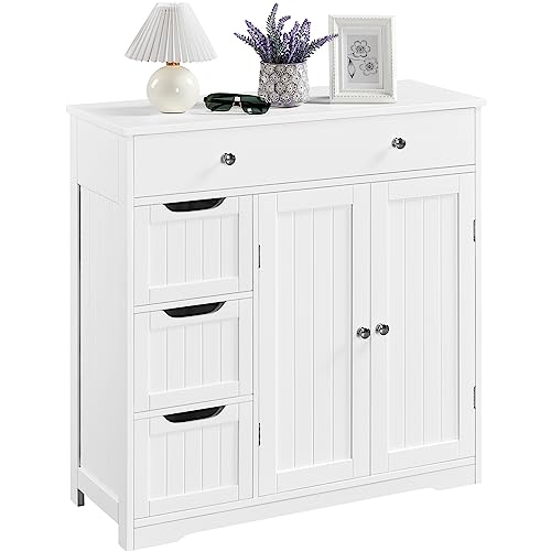 Yaheetech Meuble Rangement Salle de Bain, 4 Tiroirs 1 Placard avec 1 Plateau Réglable, 81 cm × 30 cm × 81,5 cm, Armoire Rangement Salon Entrée Cuisine Blanc
