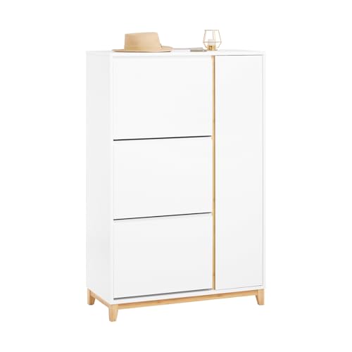 SoBuy Meuble à Chaussures Armoire à Chaussures Entrée Rangement Chaussure 3 Abattants & 1 Porte – Grand Espace pour 20 Paires + Etagère Réglable – Style Moderne Blanc 80x34x122cm FSR189-WN