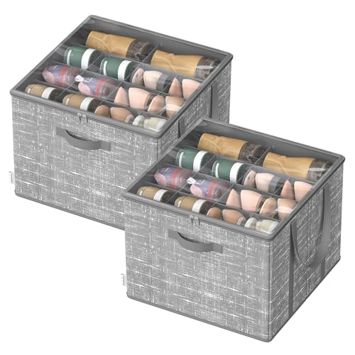 SONGMICS Organisateur de Chaussures, Lot de 2, Chacun jusqu'à 16 Paires, Boîte de Rangement pour Chaussures, Poignées, Couvercle Transparent, pour Chambre, Entrée, Armoire, Gris Jonc LSP602G01