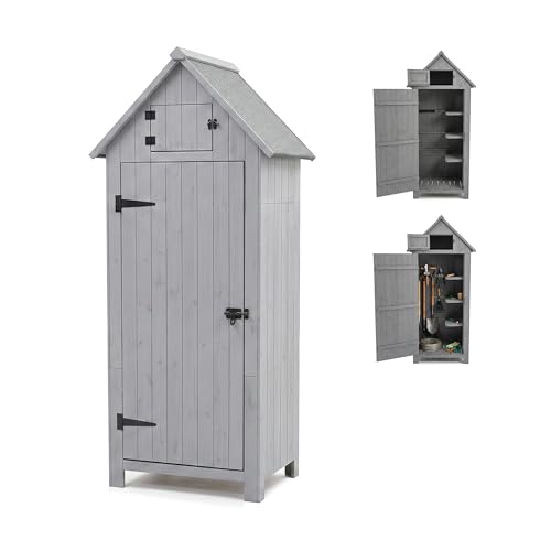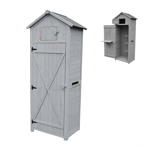 M MCombo Armoire de Jardin en Bois, Petite Maison de Jardin résistante aux intempéries, abri de Jardin Outdoor, pour l'extérieur Balcon Terrasse, 59×127×168 cm, 0912EY-F (Gris)