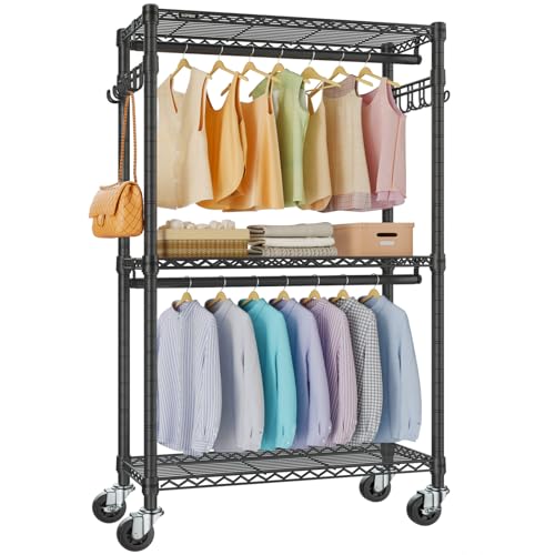 VIPEK V12 Mini portant à vêtements à roulettes robuste pour suspendre les vêtements - Étagère réglable en fil métallique - Armoire portable avec roulettes et crochets latéraux - Noir