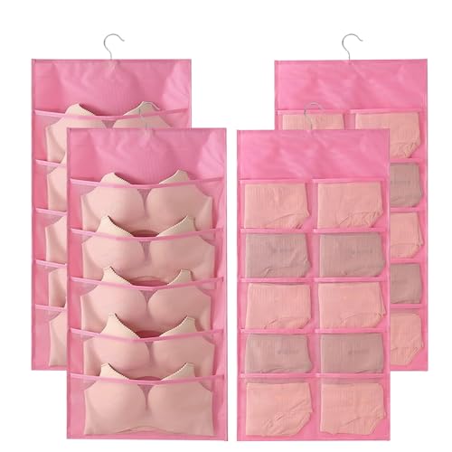 VirtuGro 4PCS Organisateur Armoire Vetement Rangement Porte à Suspendre à 15 Poches Rangement Suspendu Murale Étanche et Pliable Rangement Chambre Rose