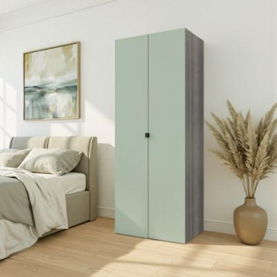 Armoire penderie 2 portes battantes vert agave et effet chêne grisé GoodHome Atomia H. 187 x L. 75 x P. 58 cm
