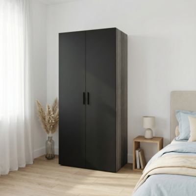 Armoire penderie 2 portes battantes noir et effet chêne GoodHome Atomia H. 187 x L. 125 x P. 45 cm