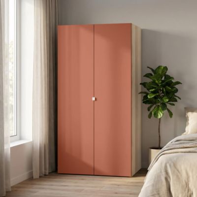 Armoire penderie 2 portes battantes terracotta et effet chêne clair GoodHome Atomia H. 187 x L. 100 x P. 45 cm