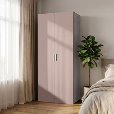 Armoire penderie 2 portes petites poignées rose taupe et effet chêne grisé GoodHome Atomia H. 225 x L. 100 x P. 45 cm