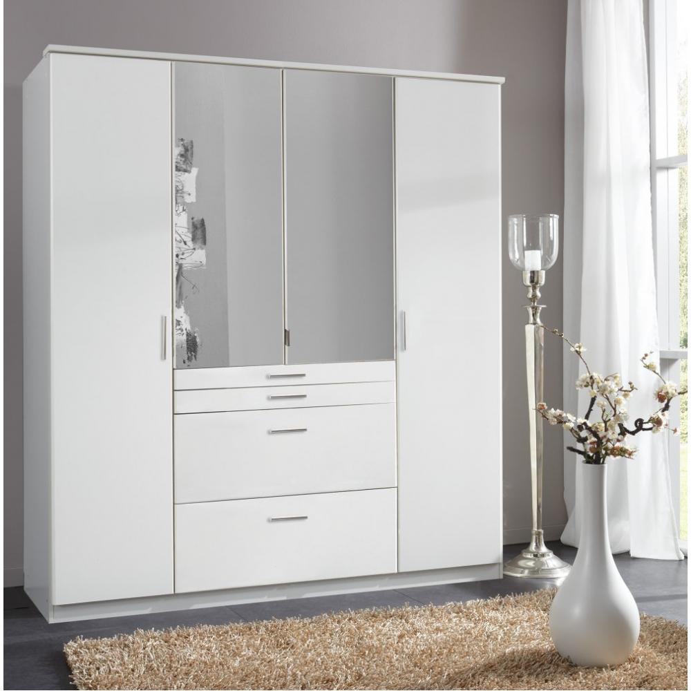 Armoire Penderie Blanche 4 Portes 4 Tiroirs 4 Etagères L 212 H 195 P 54 cm - L 212 x l 54 x H 195 cm