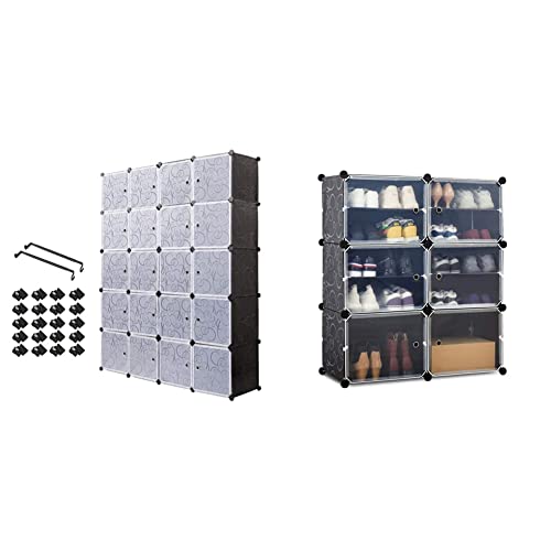 Meerveil Armoire Penderie Portable, Étagère de Rangement, Cubes de Stockage Modulaire en Plastique en métal & Rangement Chaussure, Armoire à Chaussures, Étagère à Chaussures avec 6 Cubes en Plastique