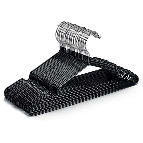 KEPLIN Cintres en Métal Revêtus de Caoutchouc Premium - Lot de 20, Gain de Place, Organisation, Rangement, Cintres Robustes pour Armoire, Penderie, Dressing, Porte-Manteaux et Barre-Tringle (Noir)