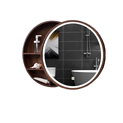 MPFYRCOJ Armoire de Salle de Bain, Armoire à Pharmacie Ronde à LED avec Miroir Circulaire Suspendu pour Chambre à Coucher/Salon/vanité/Salle de Bain/entrée (Couleur : Couleur Noyer, Taille : 50 cm)