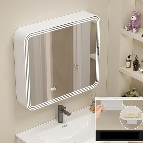 Miroir LED De Salle De Bain avec Rangement, Armoire De Miroir De Salle De Bain, Armoire à Pharmacie Miroir LED avec Miroir HD, Armoire à Pharmacie avec Dés, White, 60x13x80cm(23x5.x31in)