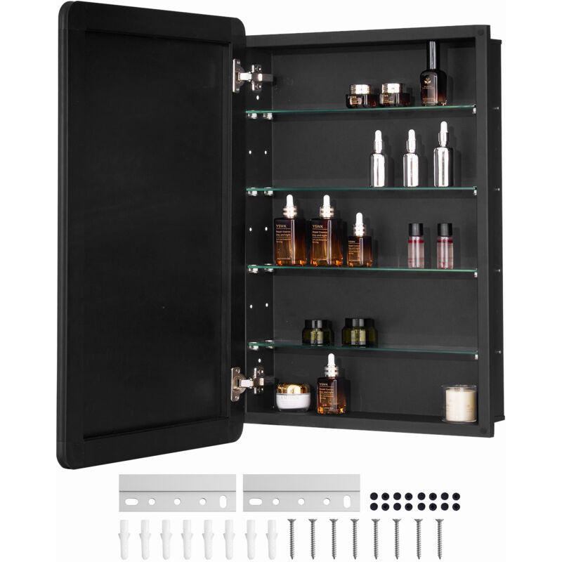 VEVOR Armoire a pharmacie, 406 x 610 mm, placard de rangement de salle de bain pour medicaments, avec miroir, cadre en aluminium et etageres