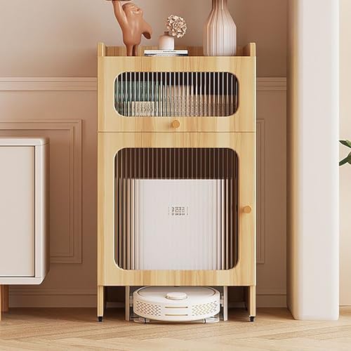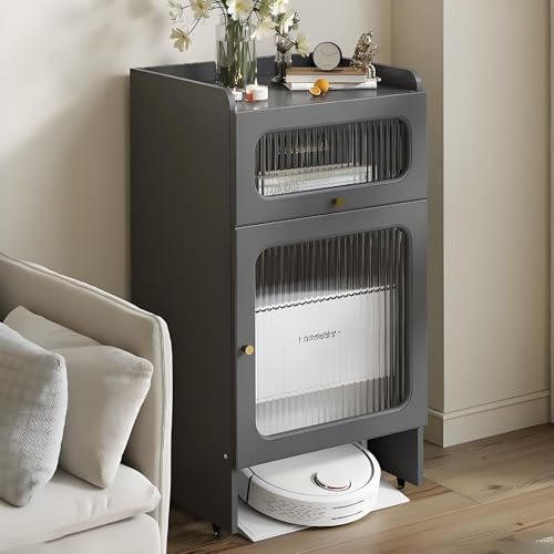GUAWJRZDP Armoire de Rangement pour Balayeuse, Meuble de Rangement Dissimulé avec Portes Et Tiroirs, Aspirateur Robot Armoire avec roulettes, Meuble de Rangement Dissimulé pour Salon(Gray)