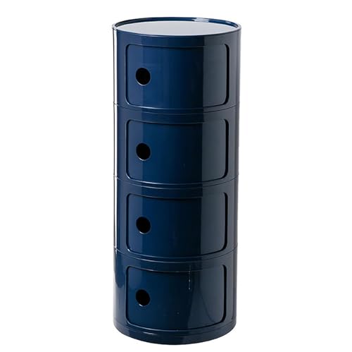 EEYZD Petite Table Chevet Ronde avec tiroirs,Armoire Rangement Ronde avec Porte coulissante,Table d'appoint Moderne,2/3/4 Niveaux pour Salon,Chambre à Coucher,Table Chevet en Plastique,Blue 4 Tier