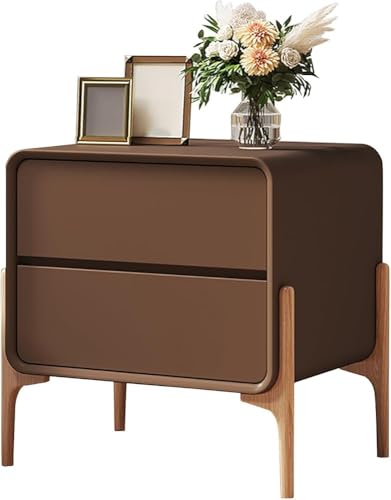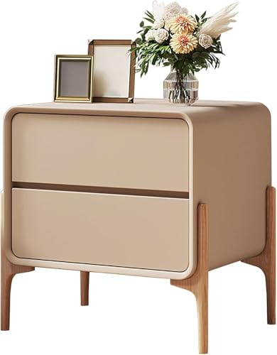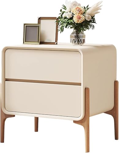 Générique Table de Chevet Moderne Minimaliste à 2 tiroirs en Bois Massif avec Coins arrondis, Armoire de Rangement en Cuir, Petite Table d'appoint pour Salon, Chambre à Coucher, Table de Chevet Blanc