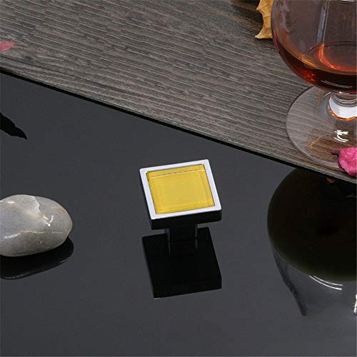 Lot de 10 Boutons de tiroir carrés Modernes en Alliage de Zinc coloré, en Cristal Transparent, pour Armoire, Commode, Placard de Cuisine 30MM Jaune