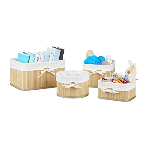 Relaxdays Boîte de rangement en bambou lot de 4 HxlxP 17,5 x 32 x 23 cm pour armoire et placard, nature